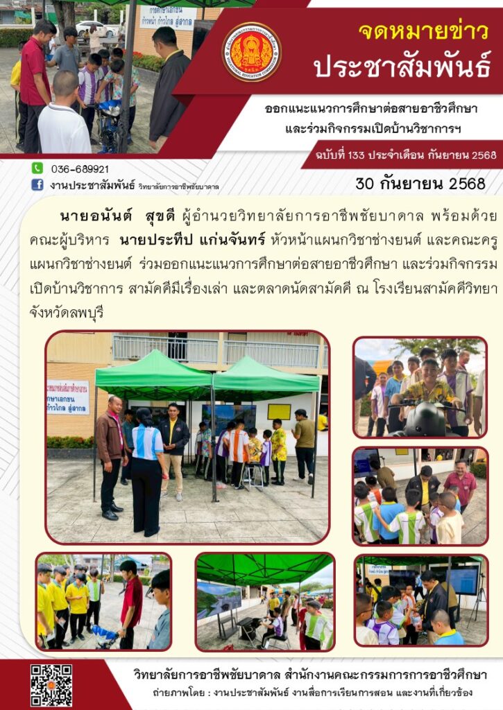 วิทยาลัยการอาชีพชัยบาดาล ออกแนะแนวการศึกษาต่อสายอาชีวศึกษา และร่วมกิจกรรมเปิดบ้านวิชาการ สามัคคีมีเรื่องเล่า และตลาดนัดสามัคคี ณ โรงเรียนสามัคคีวิทยา จังหวัดลพบุรี
