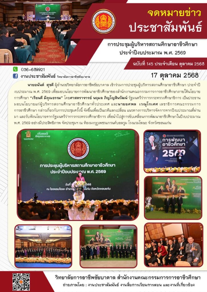 นายอนันต์ สุขดี ผู้อำนวยวิทยาลัยการอาชีพชัยบาดาล เข้าร่วมการประชุมผู้บริหารสถานศึกษาอาชีวศึกษา ประจำปีงบประมาณ พ.ศ. 2569 ณ ห้องมงกุฎเพชรแกรนด์บอลรูม โรงแรมโฆษะ จังหวัดขอนแก่น