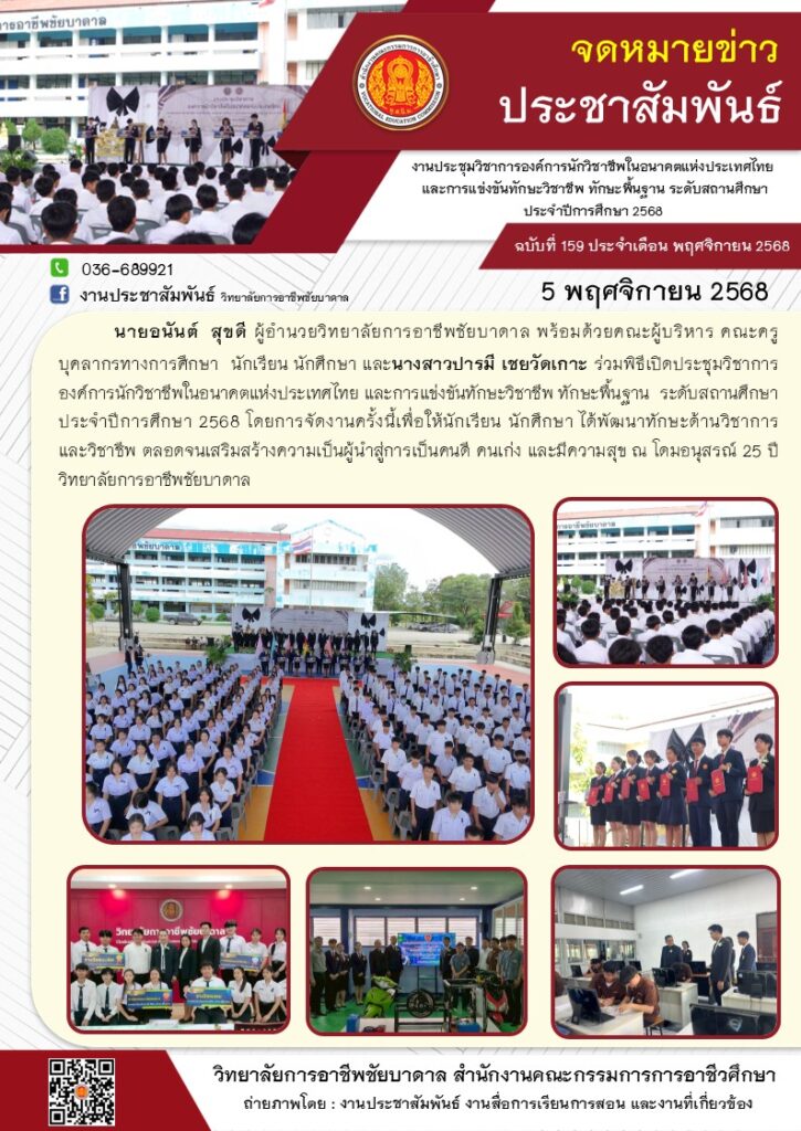 วิทยาลัยการอาชีพชัยบาดาล จัดและเปิดพิธีการประชุมวิชาการองค์การนักวิชาชีพในอนาคตแห่งประเทศไทย และการแข่งขันทักษะวิชาชีพ ทักษะวิชาพื้นฐาน ระดับสถานศึกษา ประจำปีการศึกษา 2568 ณ โดมอนุสรณ์ 25 ปี วิทยาลัยการอาชีพชัยบาดาล