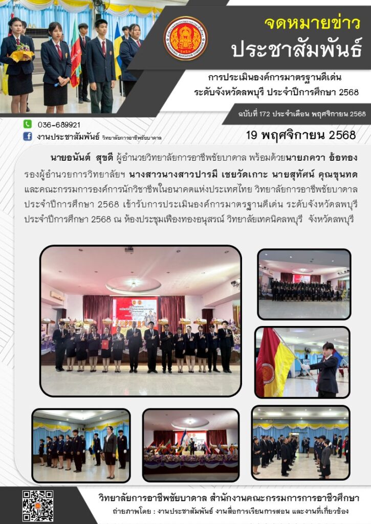วิทยาลัยการอาชีพชัยบาดาล นำคณะกรรมการองค์การนักวิชาชีพในอนาคตแห่งประเทศไทย วิทยาลัยการอาชีพชัยบาดาล ประจำปีการศึกษา 2568 เข้ารับการประเมินองค์การมาตรฐานดีเด่น ระดับจังหวัดลพบุรี ประจำปีการศึกษา 2568 ณ ห้องประชุมเฟืองทองอนุสรณ์ วิทยาลัยเทคนิคลพบุรี จังหวัดลพบุรี