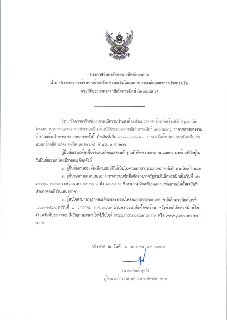 ข่าวจัดซื้อจัดจ้าง ประกาศวิทยาลัยการอาชีพชัยบาดาล เรื่อง ประกวดราคาจ้างก่อสร้างปรับปรุงต่อเติมโดมอเนกประสงค์และอาคารประกอบอื่นด้วยวิธีประกวดราคาอิเล็กทรอนิกส์ (e-bidding) chaibadan 6 มกราคม 2026 Post navigation Previous Previous post: ร่วมแข่งขันทักษะงานฝึกฝีมือเชิงสร้างสรรค์ ระดับ ปวช.1 ประเภทเดี่ยว ระดับภาคกลาง ประจำปีการศึกษา 2568 ใส่ความเห็น ยกเลิกการตอบอีเมลของคุณจะไม่แสดงให้คนอื่นเห็น ช่องข้อมูลจำเป็นถูกทำเครื่องหมาย *ความเห็น * ชื่อ * อีเมล * เว็บไซต์ บันทึกชื่อ, อีเมล และชื่อเว็บไซต์ของฉันบนเบราว์เซอร์นี้ สำหรับการแสดงความเห็นครั้งถัดไป Δ Related News ข่าวจัดซื้อจัดจ้าง ประกาศ วิทยาลัยการอาชีพชัยบาดาล เรื่อง เผยแพร่แผนการจัดซื้อจัดจ้าง ประจำปีงบประมาณ พ.ศ. ๒๕๖๘ 25 ตุลาคม 2025 0 ข่าวจัดซื้อจัดจ้าง ประกาศ วิทยาลัยการอาชีพชัยบาดาล เรื่อง เผยแพร่แผนการจัดซื้อจัดจ้าง ประจำปีงบประมาณ พ.ศ. ๒๕๖๘ 25 ตุลาคม 2025 0