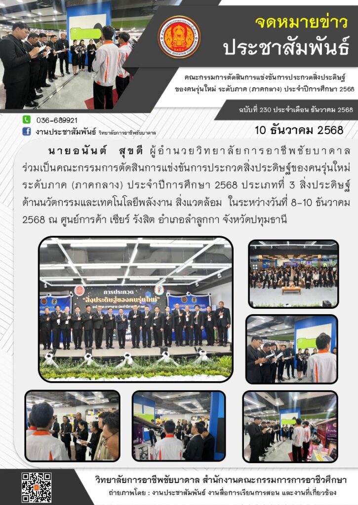 นายอนันต์ สุขดี ผู้อำนวยวิทยาลัยการอาชีพชัยบาดาล ร่วมเป็นคณะกรรมการตัดสินการแข่งขันการประกวดสิ่งประดิษฐ์ของคนรุ่นใหม่ ระดับภาค (ภาคกลาง) ประจำปีการศึกษา 2568 ณ ศูนย์การค้า เซียร์ รังสิต อำเภอลำลูกกา จังหวัดปทุมธานี