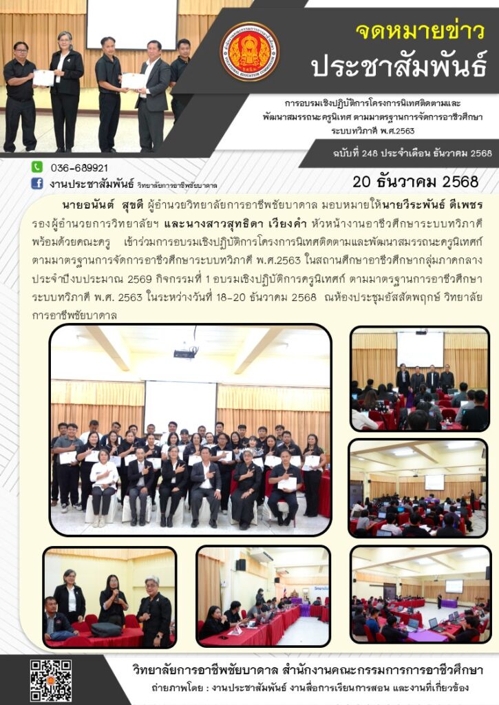 คณะครู วิทยาลัยการอาชีพชัยบาดาล เข้าร่วมการอบรมเชิงปฏิบัติการโครงการนิเทศติดตามและพัฒนาสมรรถนะครูนิเทศก์ ตามมาตรฐานการจัดการอาชีวศึกษาระบบทวิภาคี พ.ศ.2563 ในสถานศึกษาอาชีวศึกษากลุ่มภาคกลาง ประจำปีงบประมาณ 2569 ณห้องประชุมอัสสัตพฤกษ์ วิทยาลัย การอาชีพชัยบาดาล