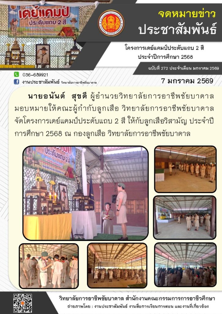 คณะผู้กำกับลูกเสือ วิทยาลัยการอาชีพชัยบาดาล จัดโครงการเดย์แคมป์ประดับแถบ 2 สี ให้กับลูกเสือวิสามัญ ประจำปีการศึกษา 2568 ณ กองลูกเสือ วิทยาลัยการอาชีพชัยบาดาล