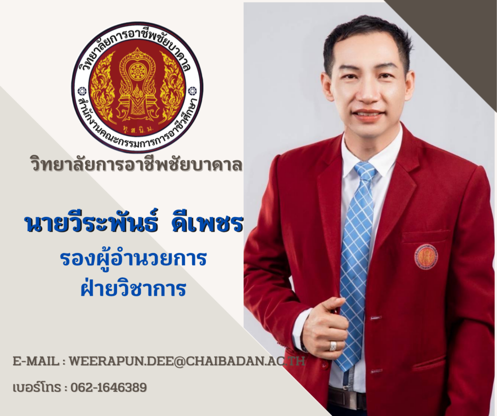 ข่าวสารรอบรั้ววิทยาลัย ขอแสดงความยินดีกับ นายวัชรพล แสงกล้า ได้รับการคัดเลือกเข้ารับ รางวัลความประพฤติดี พุทธศักราช 2568 chaibadan 29 มกราคม 2026 Post navigation Previous Previous post: ประกาศรายวิชาเรียนปรับพื้นฐาน ระดับ ปวส. สาย ม. 6 ภาคเรียนที่ S ปีการศึกษา 2568 (ภาคฤดูร้อน)Next Next post: ขอแสดงความยินดีกับ นางสาวปัณฑิตา ล้านพุฒ ได้รับการคัดเลือกเข้ารับ รางวัลความประพฤติดี พุทธศักราช 2568 ใส่ความเห็น ยกเลิกการตอบอีเมลของคุณจะไม่แสดงให้คนอื่นเห็น ช่องข้อมูลจำเป็นถูกทำเครื่องหมาย *ความเห็น * ชื่อ * อีเมล * เว็บไซต์ บันทึกชื่อ, อีเมล และชื่อเว็บไซต์ของฉันบนเบราว์เซอร์นี้ สำหรับการแสดงความเห็นครั้งถัดไป Δ Related News ข่าวสารรอบรั้ววิทยาลัย ประกาศลงทะเบียนแก้กิจกรรม 16 กุมภาพันธ์ 2026 0 ข่าวสารรอบรั้ววิทยาลัย ประกาศจากงานพัฒนาหลักสูตรการเรียนการสอน เรื่อง รายวิชาภาคฤดูร้อน ระดับ ปวช.1-3 ภาคเรียน S/2568 13 กุมภาพันธ์ 2026 0