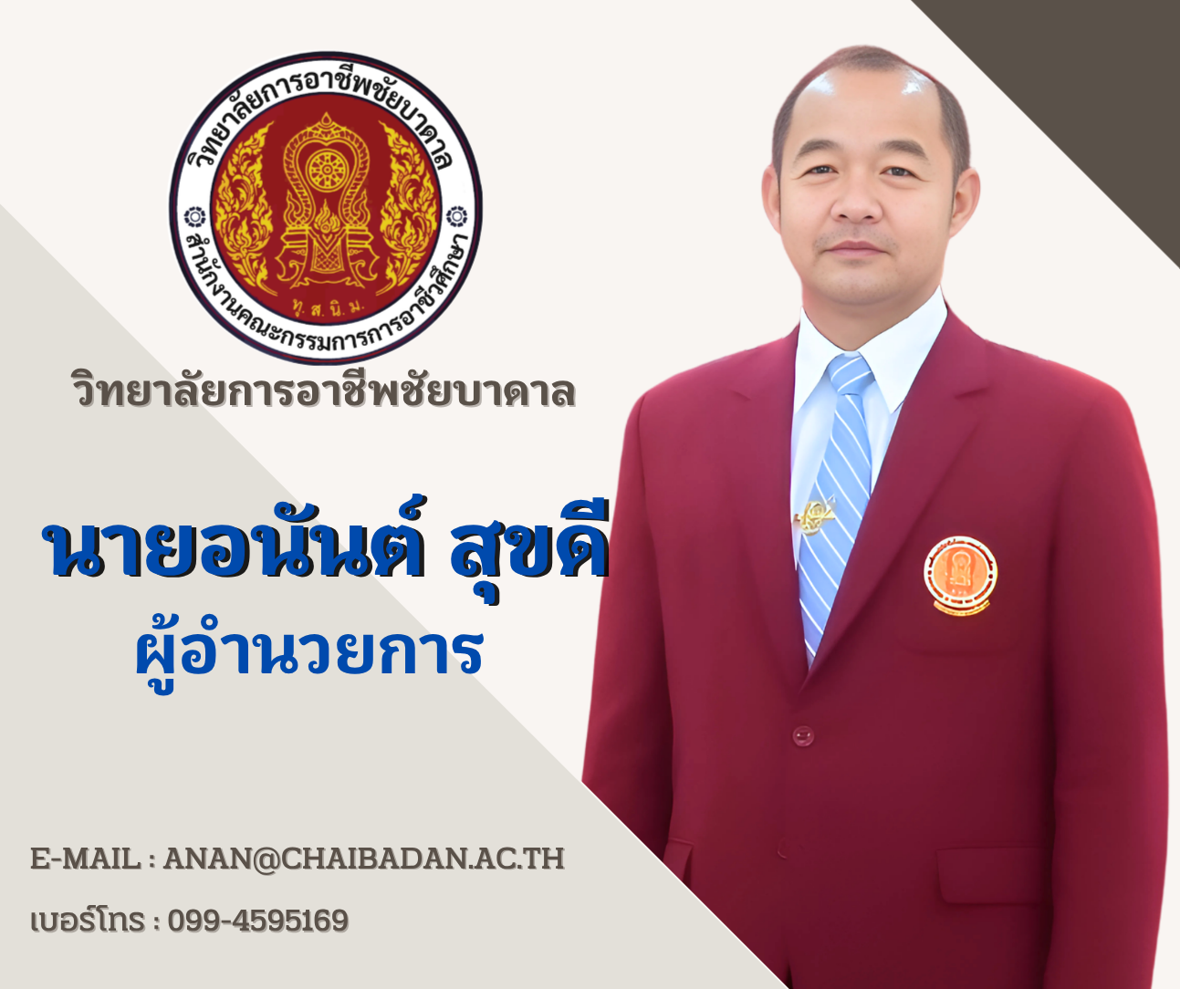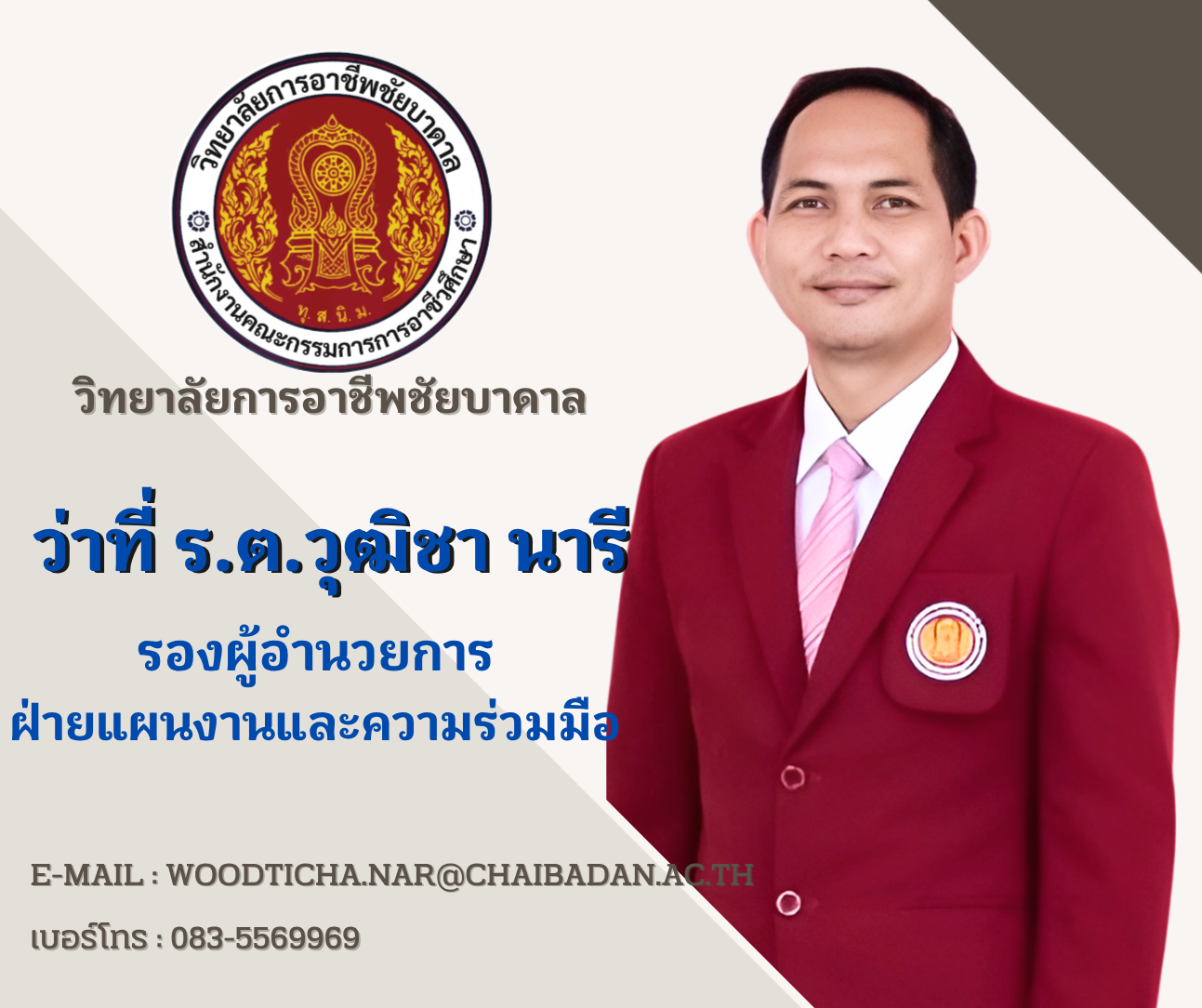 ข่าวสารรอบรั้ววิทยาลัย ขอแสดงความยินดีกับ นางสาวปัณฑิตา ล้านพุฒ ได้รับการคัดเลือกเข้ารับ รางวัลความประพฤติดี พุทธศักราช 2568 chaibadan 29 มกราคม 2026 Post navigation Previous Previous post: ขอแสดงความยินดีกับ นายวัชรพล แสงกล้า ได้รับการคัดเลือกเข้ารับ รางวัลความประพฤติดี พุทธศักราช 2568Next Next post: กิจกรรมปล่อยปลา ถวายเป็นพระราชกุศล แด่สมเด็จพระนางเจ้าสิริกิติ์ พระบรมราชินีนาถ พระบรมราชชนนีพันปีหลวง เนื่องในวาระครบ 100 วันแห่งการสวรรคต (สตมวาร) ใส่ความเห็น ยกเลิกการตอบอีเมลของคุณจะไม่แสดงให้คนอื่นเห็น ช่องข้อมูลจำเป็นถูกทำเครื่องหมาย *ความเห็น * ชื่อ * อีเมล * เว็บไซต์ บันทึกชื่อ, อีเมล และชื่อเว็บไซต์ของฉันบนเบราว์เซอร์นี้ สำหรับการแสดงความเห็นครั้งถัดไป Δ Related News ข่าวสารรอบรั้ววิทยาลัย ประกาศลงทะเบียนแก้กิจกรรม 16 กุมภาพันธ์ 2026 0 ข่าวสารรอบรั้ววิทยาลัย ประกาศจากงานพัฒนาหลักสูตรการเรียนการสอน เรื่อง รายวิชาภาคฤดูร้อน ระดับ ปวช.1-3 ภาคเรียน S/2568 13 กุมภาพันธ์ 2026 0